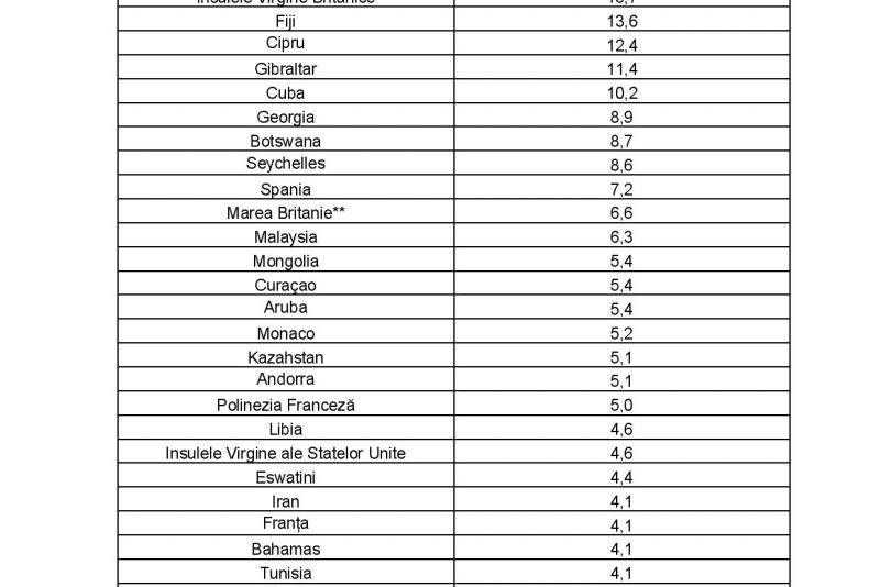 - în zona roşie rămân: Grecia, Cipru, Irlanda, Franța. Spania, Monaco, Maldive, Bahamas, Curacao şi Insulele Virgine ale Statelor Unite.