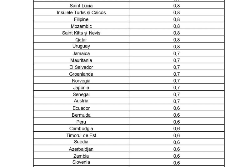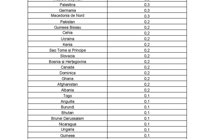 - în zona galbenă vor intra: din zona roşie, în urma scăderii incidenţei, Suriname şi Insulele Feroe şi din zona verde, în urma creşterii incidenţei, Franţa, Belgia, Israel, Statele Unite ale Americii, Islanda, Honduras, Aruba şi Saint Marteen;
