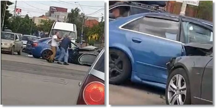 Accident într-o intersecție din Timișoara. Șoferii s-au luat la bătaie. Foto