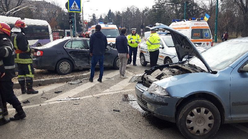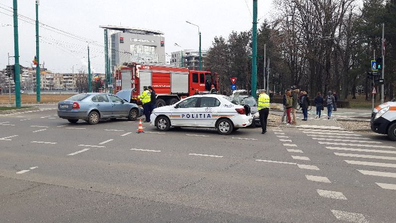 Ciocnire violentă într-o intersecție din Timișoara. Oameni răniți în urma impactului