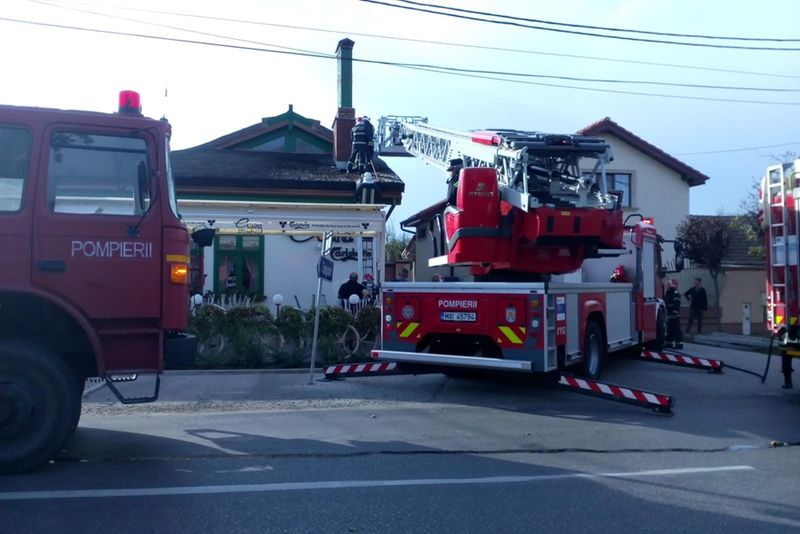 Alarmă la primele ore ale zilei într-o localitate de lângă Timișoara, după ce acoperișul unui restaurant a luat foc.