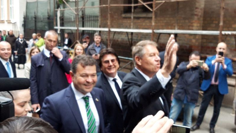 După ce a participat la aniversarea celor 75 de ani ai Universității de Vest din Timișoara, președintele Klaus Iohannis și-a continuat programul cu o vizită la Sinagoga din Cetate.Șeful statului a fost însoțit de rectorul Universității de Vest, Marilen Pirtea, de primarul Nicoale Robu, și de actrița Maia Morgenstern, însă înainte de a ajunge la lăcașul de cult s-a oprit și a făcut poze cu un grup de elevi de la liceul cu predare în limba germană, Nikolaus Lenau.