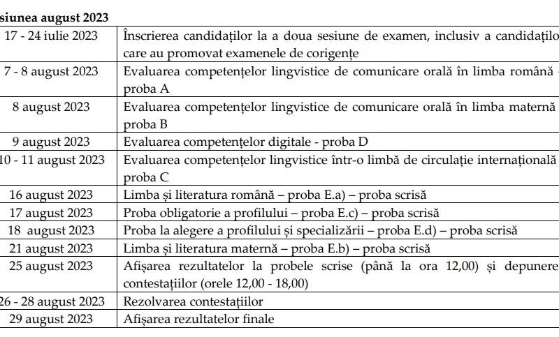 Calendarul sesiunii din toamnă a examenului de Bacalaureat