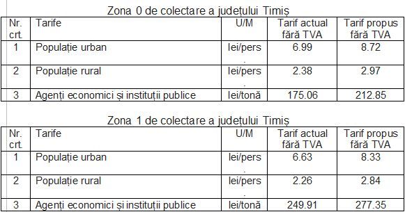 ADID Timiș și RETIM Ecologic Service anunță modificarea tarifelor de colectare a deșeurilor în Zona 0 și în Zona 1 ale județului Timiș.Schimbarea va intra în vigoare de la 1 ianuarie 2019 și va fi pusă în aplicare datorită introducerii contribuției pentru economia circulară, creșterii salariului minim pe economie, creșterilor repetate ale prețului combustibilului din ultimii ani, precum și creșterii numărului de gospodării de la care se efectuează colectarea.Conform ordonanței de urgență a Guvernului nr. 74/2018, de la 1 ianuarie 2019 va intra în vigoare costul de mediu denumit “contribuția pentru economia circulară”. Valoarea acestei taxe a fost stabilită la 30 lei per tonă de deșeuri depozitată, iar acest cost, în conformitate cu legislația aplicabilă, se va reflecta în tariful de colectare al deșeurilor.Operatorul de colectare RETIM va încasa această taxă de la utilizatorii serviciului printr-o suplimentare de tarif și o va plăti mai departe către operatorii instalațiilor de tratare, transport și depozitare a deșeurilor din județul Timiș. Destinația finală a acestei taxe este fondul pentru mediu gestionat de Administrația Fondului pentru Mediu.De asemenea, o suplimentare minimă se va aplica tarifului existent și pentru a acoperi creșterea de costuri generată de mărirea prețului combustibilului și mărirea salariului minim pe economie în perioada decembrie 2016 - decembrie 2018, adică de când a fost depusă oferta RETIM și până când RETIM a cerut recalcularea acestuia.O alta cauză a majorării de tarif, atât în cazul populației urbane cât și a celei rurale din ambele zone, o reprezintă suplimentarea numărului de rute de colectare (echipaje și mașini adiționale) generată de creșterea numărului de locuințe și extinderea zonelor locuite din aceste localități în ultimii ani.Propunerea de modificare a tarifelor a fost aprobată în Consiliul Director al ADID Timiș, urmând ca în perioada imediat următoare să fie ratificată prin Hotărâri ale Consiliilor Locale ale fiecărei localități din zonele 0 și 1, în vederea implementării noilor tarife începând cu luna ianuarie 2019.