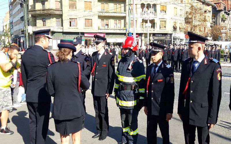 Pompierii și-au sărbătorit ziua alături de timișoreni cu o paradă în centrul orașului, care i-a încântat cel mai mult pe cei mici.Ziua a început cu o slujbă religioasă în Catedrala Mitropolitană, după care pompierii s-au aliniat în dispozitiv pentru partea oficială a ceremoniei. Au ținut discursuri reprezentanții oficialităților locale și județene, dar și reprezentanți ai pompierilor din Franța și Cehia, care colaborează cu cei din Timiș.După acordarea unor plachete de onoare invitaților au fost înaintați în grad opt dintre pompieri.