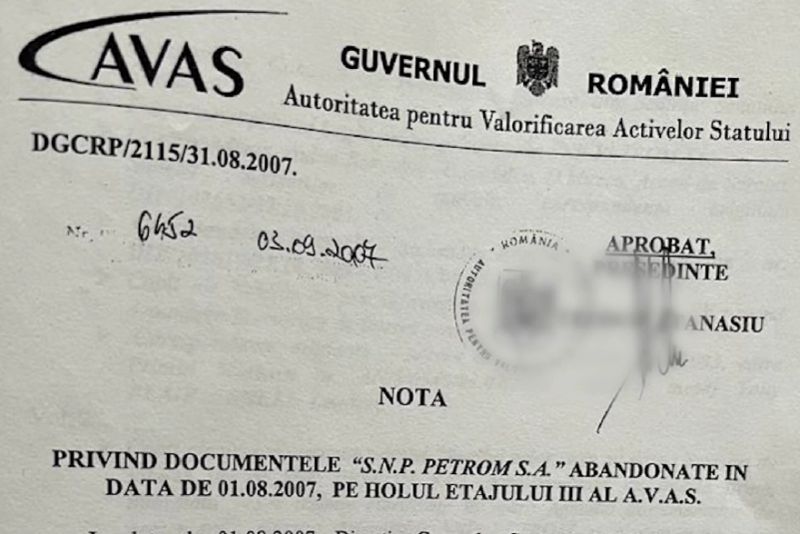„Este ca-n Caragiale... Am intrat în posesia astăzi a unui document din 3.09.2007, semnat de dl Teodor Atanasiu. Notă privind documentele SNP Petrom SA, abandonate in 1.08.2007, pe holul etajului trei al AVAS. Nu este o glumă...