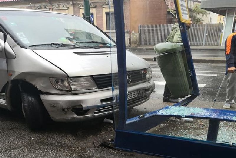 Accident grav pe o stradă intens circulată din Timișoara. Un microbuz s-a 'înfipt' într-o stație de tramvai
