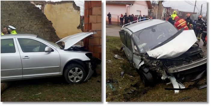 Ciocnire teribilă între două autoturisme într-o localitate de lângă Timișoara.Accidentul a avut loc în comuna Săcălaz, aflată la 10 kilometri de Timișoara. Două mașini s-au izbit într-o intersecție din localitate, iar în urma impactului o masina a ajuns intr-un sant de pe marginea drumului, aproape rasturnata, in timp ce al doilea autoturism s-a oprit in zidul unei constructii.