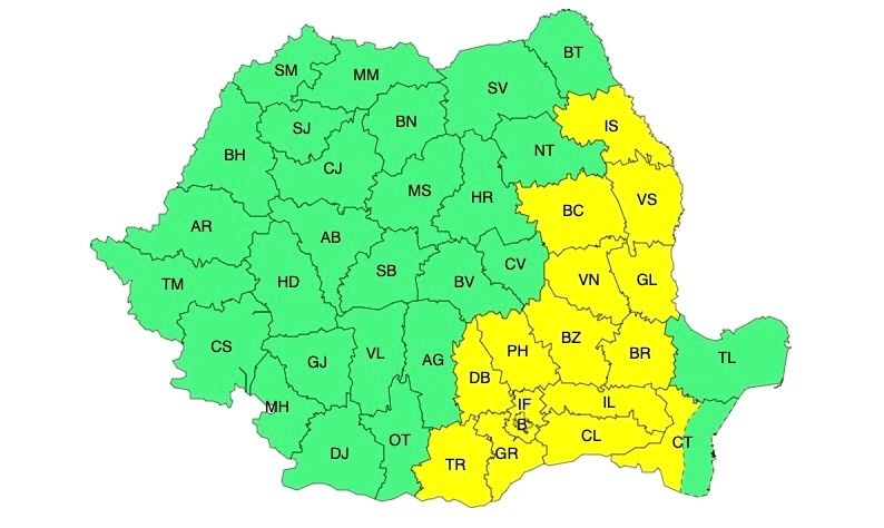 În cea mai mare parte a Munteniei și Moldovei, precum și în sud-vestul Dobrogei, va fi caniculă și disconfort termic ridicat, iar indicele temperatură-umezeală (ITU) va depăși ușor pragul critic de 80 de unități. Temperaturile maxime vor fi în general de 35...37 de grade. Local, minimele nu vor coborî sub 20 de grade, caracterizând o noapte tropicală.