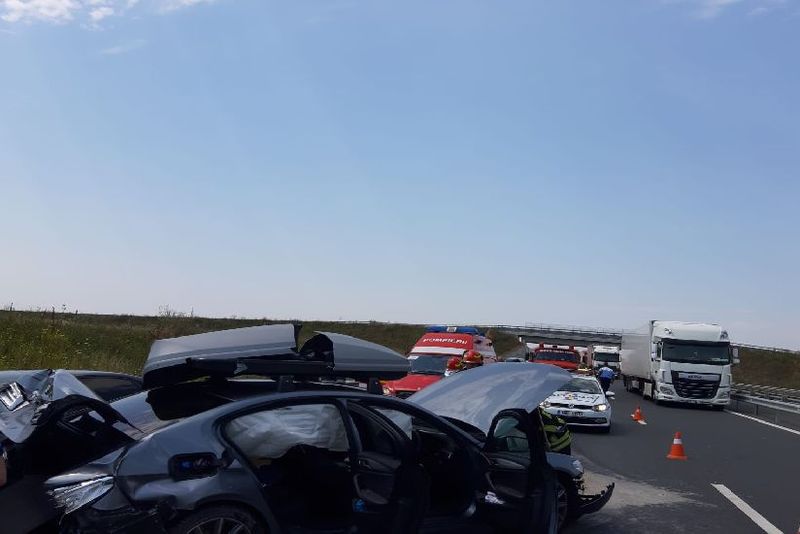 Două accidente pe autostradă în apropiere de Timișoara. Mașini răsturnate și distruse și oameni răniți