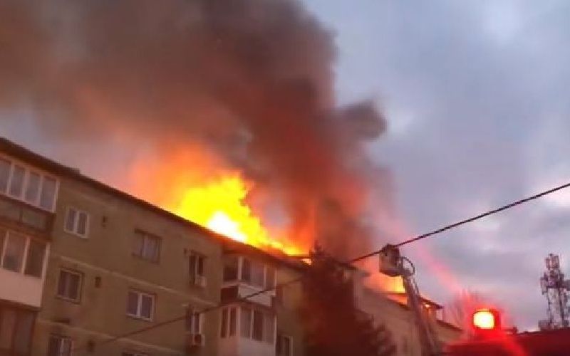 Flăcări înalte la mansarda unui bloc din Timișoara. VIDEO