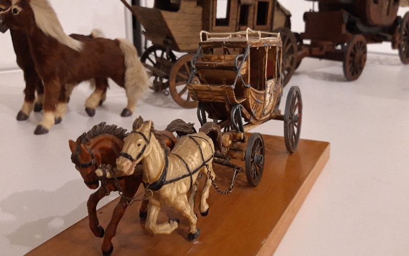 În cadrul expoziției se pot vedea mai multe goarne folosite în poștă, dar sunt prezentate și animalele folosite pentru transmiterea scrisorilor sau poștalioanele folosite de-a lungul anilor pentru transportul coletelor.În cadrul expoziției din Bastionul Theresia sunt expuse și machete ale mașinilor, motocicletelor și bicicletelor folosite de Poștă de-a lungul anilor, dar și machete de vapoare, avioane sau zeppeline.[gallery columns="4" ids="62934,62935,62936,62937,62938,62939,62940,62941"]„E colecția mea personală și nu e toată. Colecția începe de la primul vestitor cu trompeta până la avion. Și ce am pregătit inedit sunt mijloacele de transport istorice, în toate mediile. Adică terestru, aici e rutier și feroviar, maritim și aerian, exact cum au apărut ele… Colecția am strâns-o de-a lungul anilor. Când am intrat în Palatul Poștelor acolo funcționa o mare bibliotecă, în mare parte cu cărți tehnice, dar în cadrul ei nu scria nimic de Poșta. Și atunci, de la salariații vechi, care ce aveau, am început să cer și eu câte o carte. Vreau să spun că la următoarea expoziție vreau să etalez întreaga mea bibliotecă poștală, care cred eu că este unicat„, a declarat Caius Lăzărescu, deținătorul tuturor exponatelor.