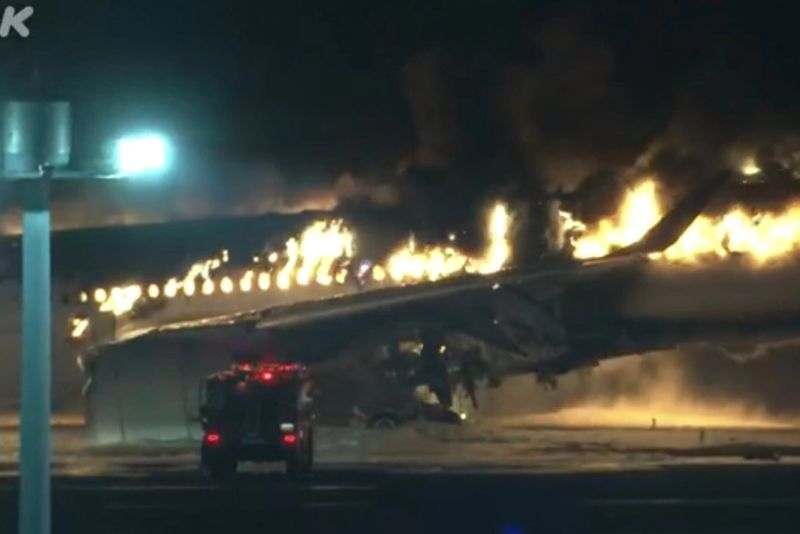Cinci membrii ai echipajului unui avion militar au murit, după ce un avion cu aproape 400 de persoane la bord a luat foc, marți, în timpul aterizării pe pista aeroportului Haneda din Tokyo. Totul s-a petrecut după ce aeronava s-a ciocnit de avionul Gărzii de Coastă. Victimele sunt membrii ai avionului militar, restul pasagerilor din aeronavă ce aparține companiei Japan Airlines au supraviețuit ca prin miracol. Aeronava a fost cuprinsă în totalitate de flăcările uriașe, la fel ca pista aeroportului, care a fost evacuată de urgență.