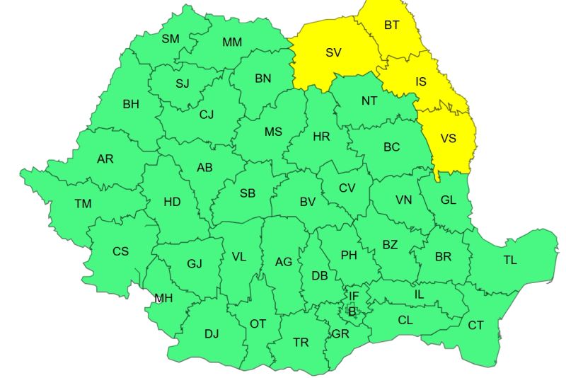 În nordul și estul Moldovei vor fi temperaturi deosebit de scăzute și local ger, îndeosebi în cursul nopții când se vor înregistra minime termice cuprinse între -13 și -8 grade. Temperaturi în jurul valorii de -10 grade se vor menține și pe parcursul zilei de vineri.