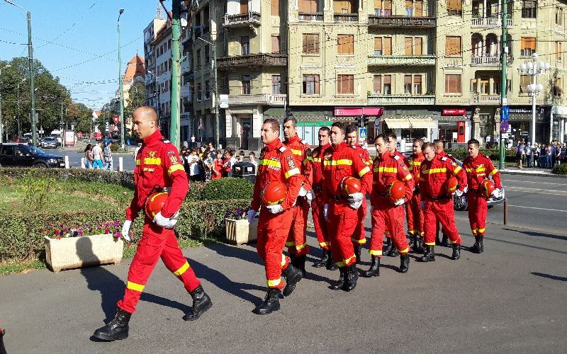 Pompierii și-au sărbătorit ziua alături de timișoreni cu o paradă în centrul orașului, care i-a încântat cel mai mult pe cei mici.Ziua a început cu o slujbă religioasă în Catedrala Mitropolitană, după care pompierii s-au aliniat în dispozitiv pentru partea oficială a ceremoniei. Au ținut discursuri reprezentanții oficialităților locale și județene, dar și reprezentanți ai pompierilor din Franța și Cehia, care colaborează cu cei din Timiș.După acordarea unor plachete de onoare invitaților au fost înaintați în grad opt dintre pompieri.